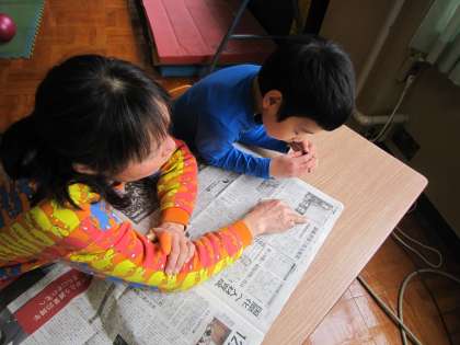 あおぞら学級では,新聞を先生と一緒に読んだりお便りを読んだりしていました。