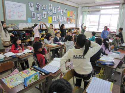 写真は,希望者が後ろに行きじゃんけんで担当者を決めていたところです。