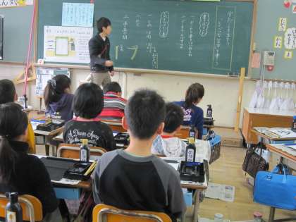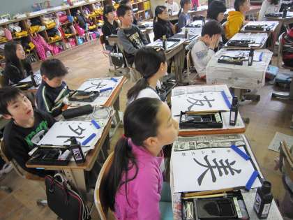 3年2組では,習字でこれまでに学習して生きたことを生かして,特別な一文字を書こうとしていました。