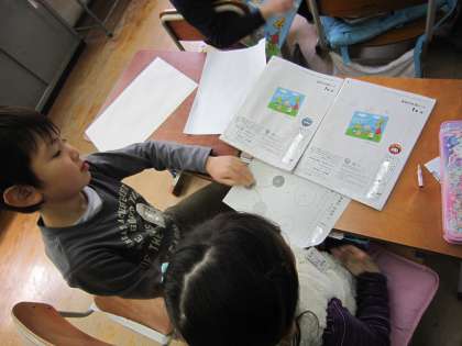 全て練習し終えると,ノートの裏に大きなシールを貼ってもらいます。