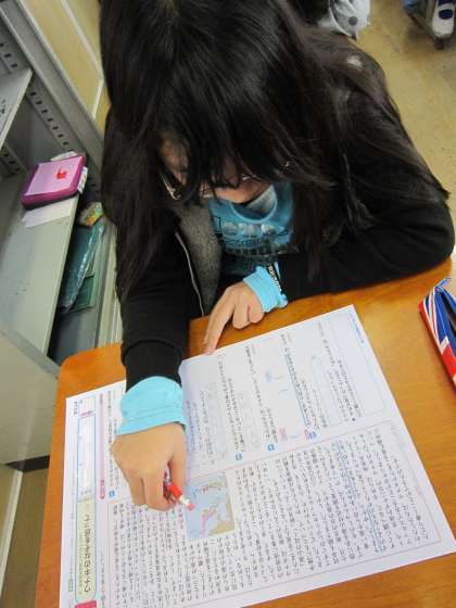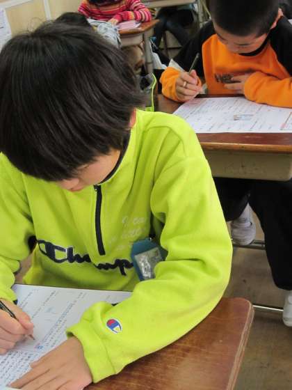 4年1組では,「うなぎのなぞをおって」のテストを実施していました。
