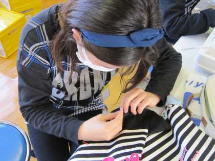 今作っているエプロンが完成したら,おうちでも使ってくれるといいなあと思います。