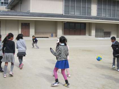 「えいっ!やー」とばかりに相手めがけて全力投球