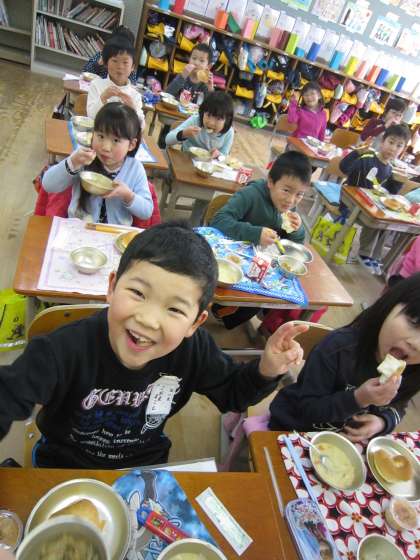 「はい,ポーズ」のかわり「はい,パクリ」というとみんなそろってお口へ