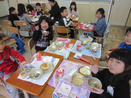 子ども達の顔を見ると,今日の給食の味が分かりますね。