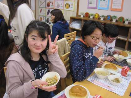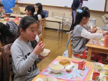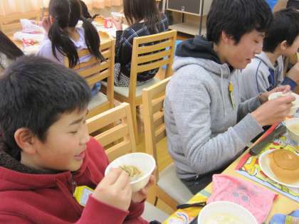 どのテーブルも笑顔で給食を堪能している様子です。
