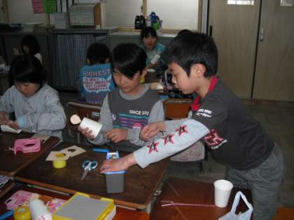 「こうやって作るんだよ。」優しく教える姿が見られました。