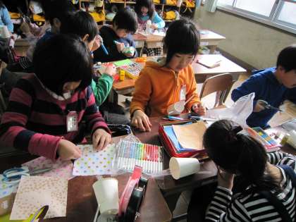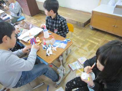 2年1組では,ストローピョコパタに取り組み,友達を相談したりしながら作っていました。
