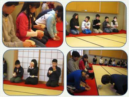 今日の茶道教室では,6年生全体を3つのグループに分けて3回の茶席を開いていただきました。