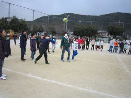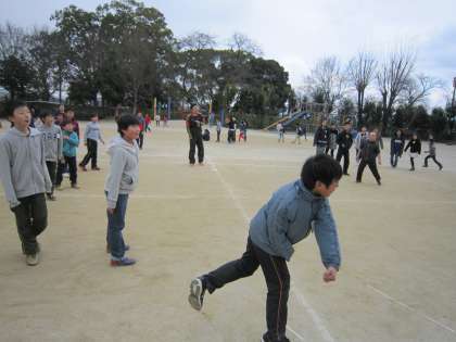 写真は高学年の熱戦の様子です。お互いに譲らず,真剣勝負が繰り広げられました。