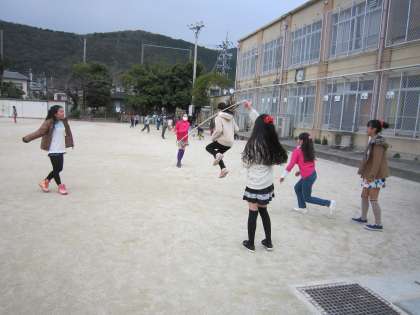 5・6年の2組対戦が行われている横では,長縄をしたりそれぞれの昼休みを楽しんでいました。