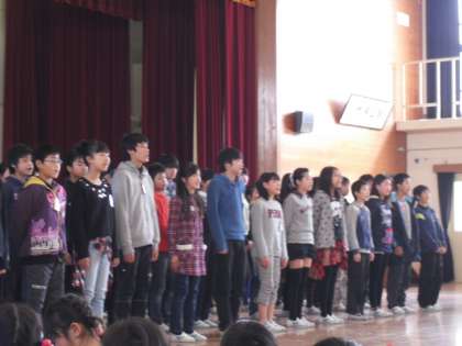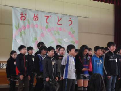 6年生は卒業式で歌う「流れゆく雲をみつめて」という曲を二部合唱してくれました。