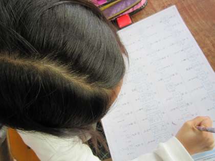 テストを終えた子が増えてきたときに,「解き直しをしましょう。漢字テストでの解き直しは・・・」という担任の声が聞こえてきました。