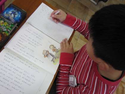 今日は,4の場面のおばあさんのしたことについて考えようとしていました。