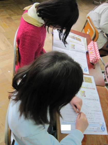 今日の3年2組では,国語のテストを返却した後,漢字についてこの漢字はこう書くよという話をしていました。