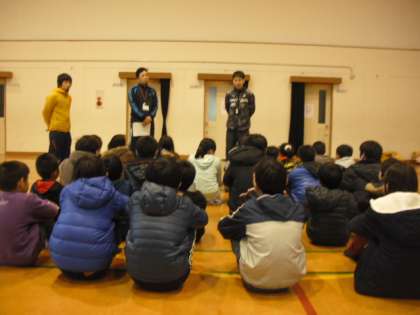 陸上部の反省会です。先生から子どもたちへのメッセージ「好きなことを見つけて努力を続けていってほしい」