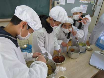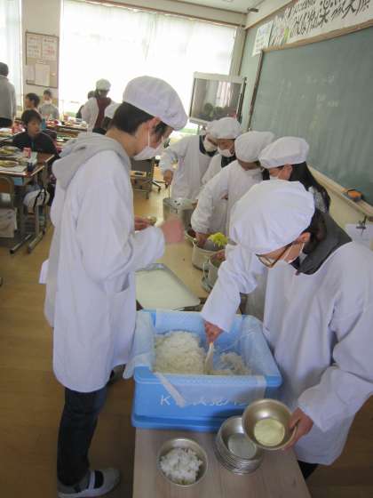 6年生の配膳の様子を見ました。