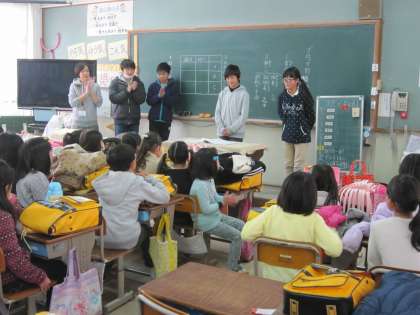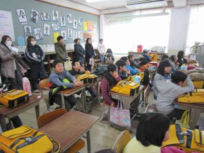 それぞれのブロックで,卒業する6年生のあとを受ける登校リーダーらを選びました。