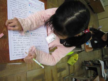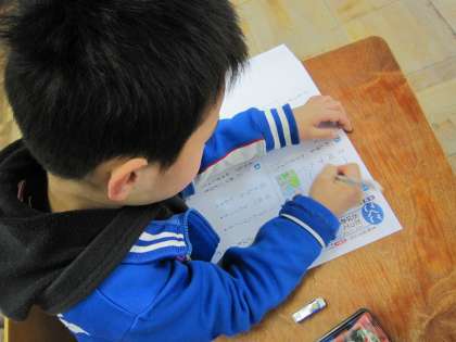 1年2組では,国語のテストをしていました。