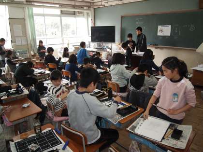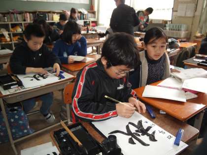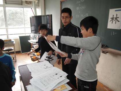 4年2組は習字の時間です。書いていたのは「林」「星」「秋」など一文字です。