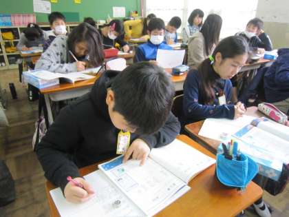6年2組では,算数の最後にある復習問題に取り組んでいました。
