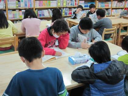 4年1組では,図書室に行き読書を楽しんでいました。