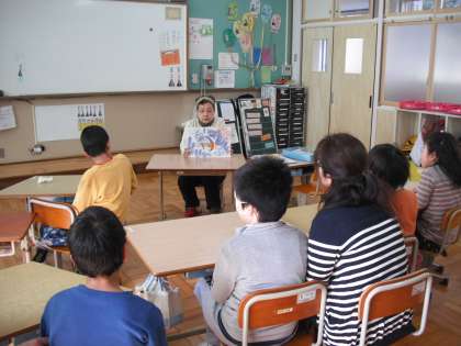 あおぞら学級の朝の会でボランティアの方に紙芝居をしてもらいました。みんなしっかりと聞いていました。