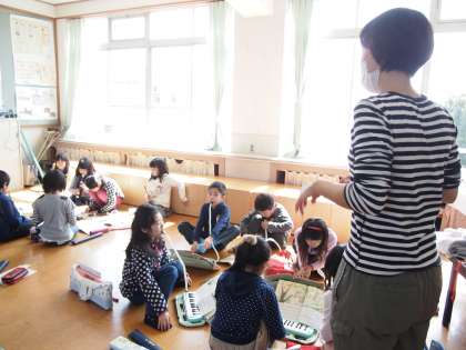 森の妖精は鉄琴の音色で,かっこうはリコーダで…いろんな楽器で表現します。
