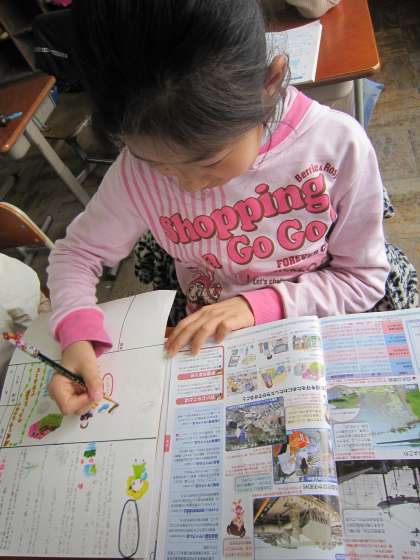 5年1組では,社会科の新聞づくりをしている子たちがいました。