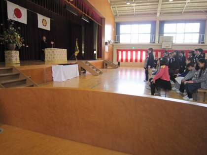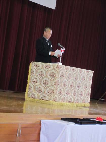 学校長は式辞の中で,「皆さんはあこがれの種をまいてくれました。この種を良き伝統にしていきたい。」と話しました。また,「面倒なことから逃げずに立ち向かってほしい。感謝の気持ちを持って暮らしてほしい。」と話しました。
