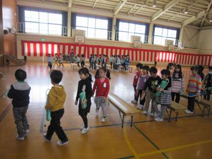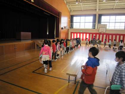 お迎えの言葉の時には,曲とともに体育館の前に並びます。