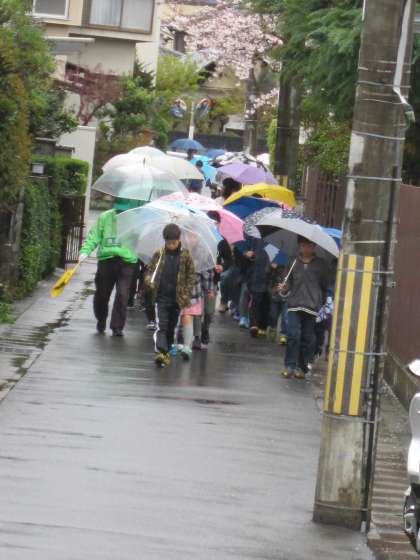 おうちの方々や見守り隊の皆さんといっしょに登校してきました。