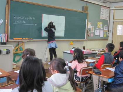 5年2組では,自己紹介をしていました。自分の名前をみんなに知ってもらおうとしていました。