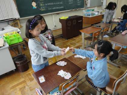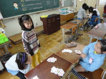 雨の日なので外では遊べません。こんなときはババ抜き!終始笑顔でプレーしていたのが印象的でした。