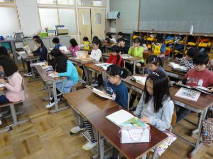8時40分から50分まで黙って読書をします。どの本を選ぶかも重要です。