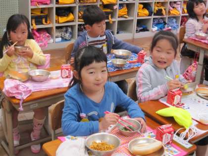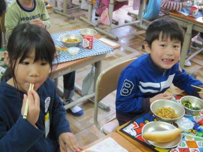 子ども達は,初めての給食を味わっているようでした。