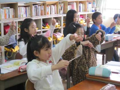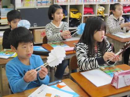 今日の2組では,扇子のようなものを使って,角の大きさを表そうとしていました。