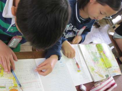 教科書の絵から,身の回りにどんな生き物がいるのかを探していました。