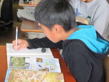 「犬を飼っていました。」「わらをなっていました。」など,絵を見て気付いたことを発表し合っていました。
