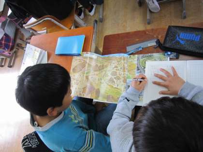 当時のくらしの想像画を見て,どんな暮らしをしていたのかを話し合っていました。