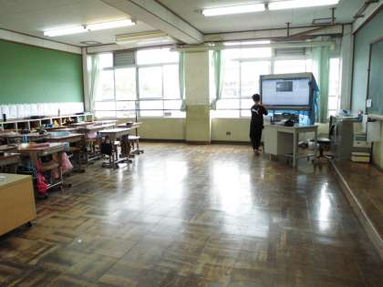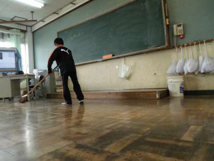 今日の教室掃除に一番乗り。