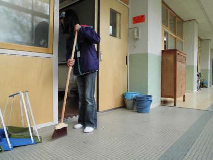 チャイムの前には,もう掃き始めていました。