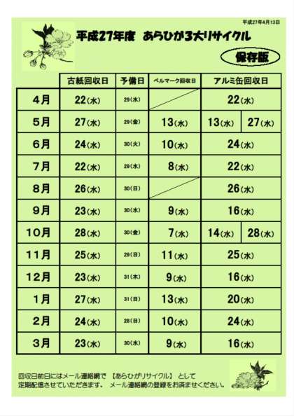 平成27年度 あらひが3大リサイクル〜PTA本部より