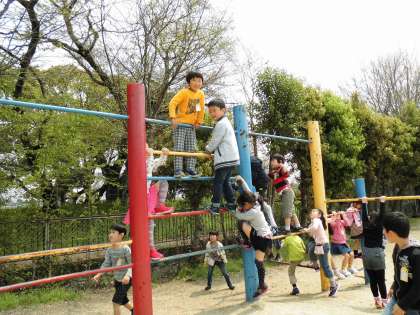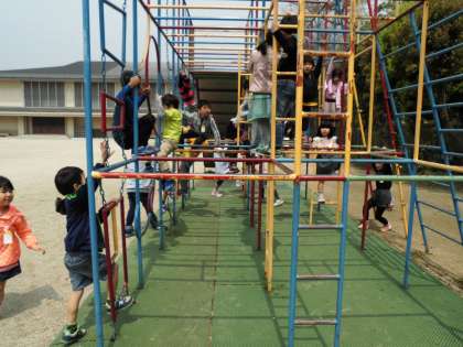 今日はやっといいお天気になったので,運動場で遊具の使い方を確かめて,みんなで遊びました。