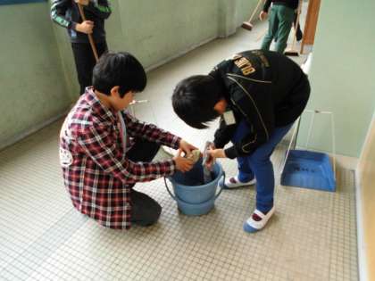 はき掃除が早くできるようになったのか,雑巾がけをする子が先週よりも多くなっていました。
