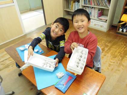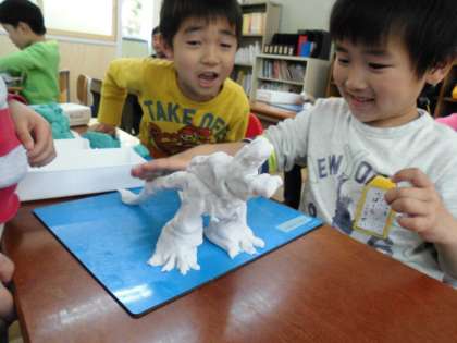 恐竜や魚,ねこやロボット,ケーキやたこやきなど,たくさんの作品が出来ました。