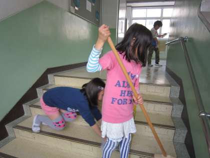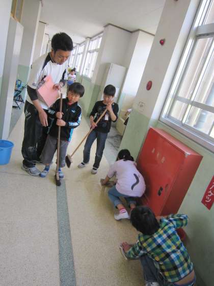 5月中旬から始まる「ぴかそ」に向けて,どのように掃除を進めるとよいのかを確かめながら掃除をしています。