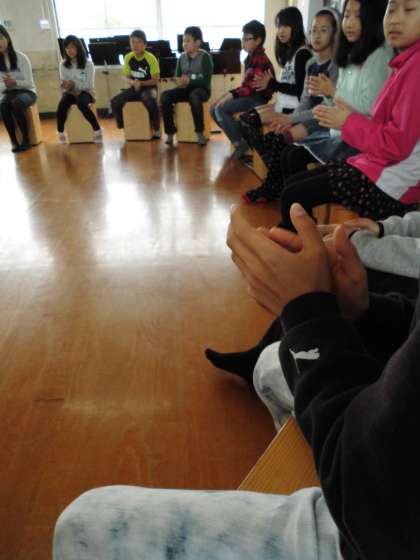 みんなでリズムをつないで一つの音が出来上がります。