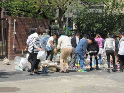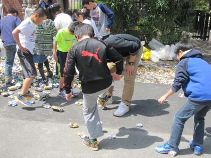今日は,アルミ缶回収の日です。春休み中に持ってきてくださった分もあり,いつもより多くありました。