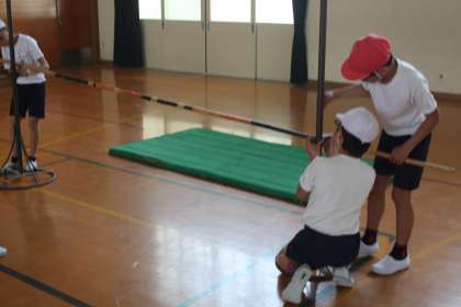 今日から体育は高跳びの学習。